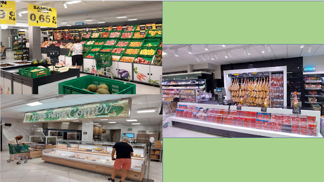 Grocery stores are everywhere. They come in very small and very large sizes and are mostly chain stores. Brand names are Corte Ingles, Dia, Mercadona, Chedarrui, Aldi, and Lidi, just to name a few. They have large supermarkets and also small convenience store-size markets. Convenience stores such as Circle K, 7Eleven, and OXXO, don't exist. Mom and pop stores are called alimentacion, and are found pretty much everywhere. One thing we liked about the downsized chain stores is they sell products in smaller packaging which were great for our travel chest and cooler.